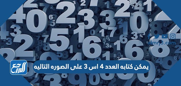 يمكن كتابه العدد ٤ اس ٣ على الصوره التاليه على اعتبار أنّ الأسس هي مفهوم رياضيّ له كتابته الخاصّة التّي تُعبّر عن اختصار خاص بعملية حسابيّة كثيرة الاستخدام، ونظرًا لذلك سنخط لكم مقالنا التالي عبر موقع المرجع لتوضح إجابة التساؤل المطروح مع شرح كامل عن مفهوم الأسس والقوى، بالإضافة إلى الخصائص المتعلّقة بها.