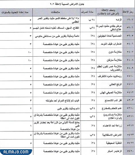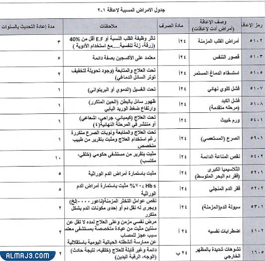 سلم اعانات التاهيل الشامل لأصحاب الأمراض الخطيرة