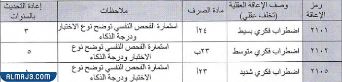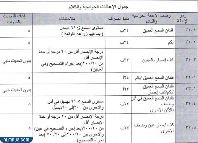 سلم اعانات التاهيل الشامل الجديد حسب نوع الإعاقة