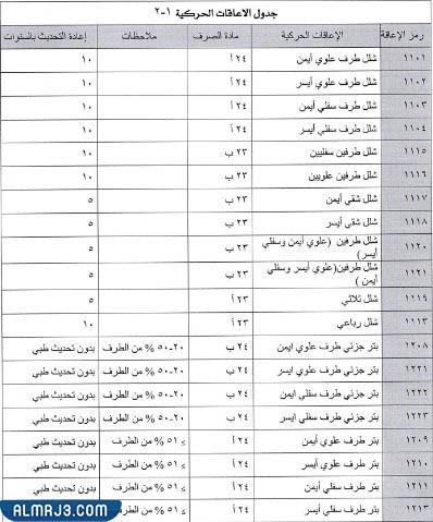 | الإصابة بضعف بأحد الأطراف | 4 آلاف ريال |