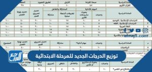 توزيع الدرجات الجديد للمرحلة الابتدائية 1447