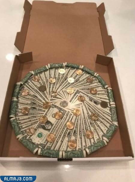 فكرة أنيقة جدًا وغريبة، وذلك بوضع النقود على شكل قطعة بيتزا داخل علبة خاصة بالبيتزا. ومن المؤكد أنّ متلقي الهدية سيفرح بها أكثر من قطعة البيتزا.