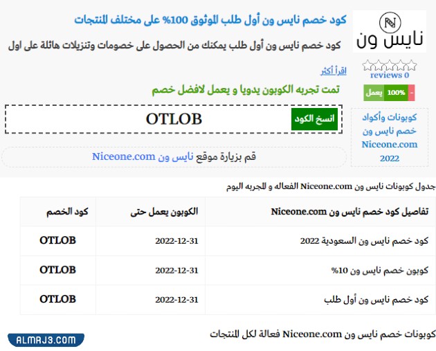 | كود خصم نايس ون السعودية 2022 | 31 ديسمبر 2022 | OTLOB |