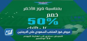 قائمة عروض فوز المنتخب السعودي على الارجنتين كاملة، بعد فوز المنتخب السعودي في المباراة الأولى له في كأس العالم يوم الثلاثاء 22 نوفمبر 2022 تم الإعلان عن مجموعة من العروض والخصومات لعدد من المنتجات لفترات محدودو بمناسبة الفوز، لذلك من خلال موقع المرجع سوف نتطرق بالحديث عن أهم عروض بمناسبة فوز المنتخب السعودي.
