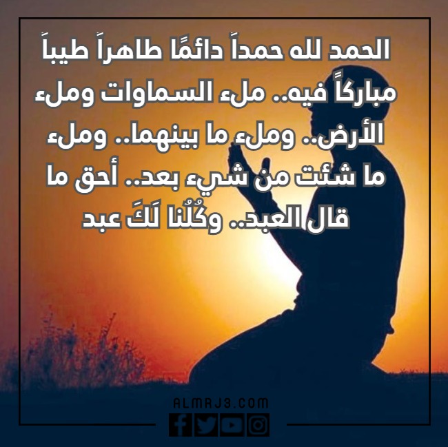 - “الحمد لله حمداً دائمًا طاهراً طيباً مباركاً فيه.. ملء السماوات وملء الأرض.. وملء ما بينهما.. وملء ما شئت من شيء بعد.. أحق ما قال العبد.. وكُلُنا لَكَ عبد”.
