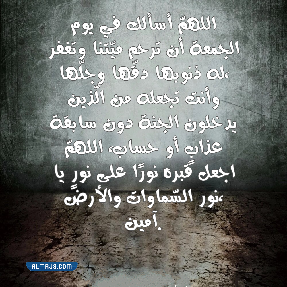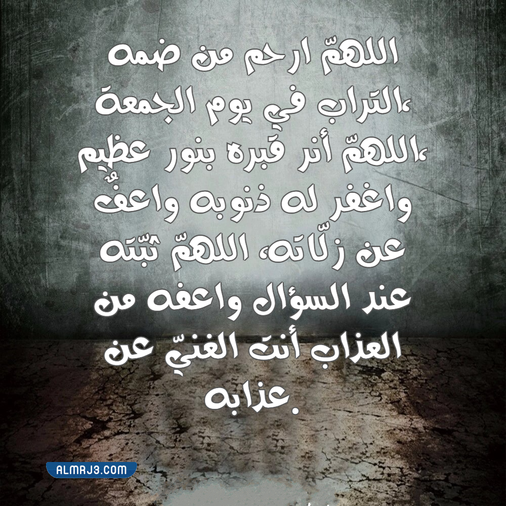 - اللهم في يوم الجمعة أسألك الرحمة والمغفرة لمن ضمه التراب، اللهم نوّر قبره، ووسع مدخله، واغفر له ذنبه، وأدخله جنات الخلد والنعيم.