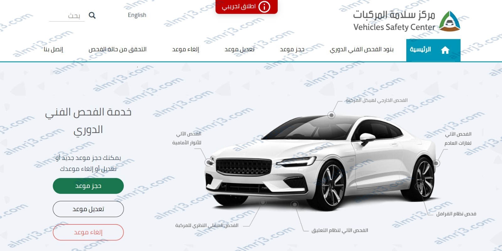 رابط وطريقة تجديد الفحص الدوري أون لاين عبر المنصة الرسمية لمركز سلامة المركبات، والذي يستلزم بدايةً حجز موعد رسمي من المنصة التي وفرتها الإدارة العامّة للمرور لتمكين ملّاك المركبات بغض النظر عن فئاتها من التعرف على مدى سلامتها فنيّاً، فضلاً عن إمكانية تعديل الموعد أو إلغائه والاستعلام عن نتيجة الفحص أون لاين، لذا يهتم موقع المرجع بتسليط الضوء على آلية حجز موعد لتجديد الفحص الفنّي الدوري للسيارات.