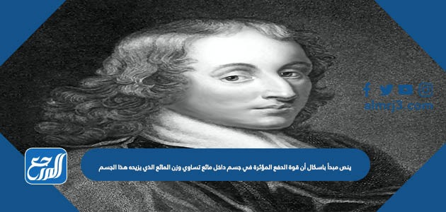 ينص مبدأ باسكال أن قوة الدفع المؤثرة في جسم داخل مائع تساوي وزن المائع الذي يزيحه هذا الجسم، حيث اهتم العلماء في الفيزياء من القِدم، وأجروا عليها العديد من الدراسات والتجارُب والتحليلات لأجل الخروج بالقوانين الفيزيائية الصحيحة، مثل باسكال، أرخميدس، نيوتن، أينشتاين، وغيرهم من العلماء الآخرين، حيث درسوا قوة الدفع والجاذبية والنظرية النسبية وغيرها، وفي موقع المرجع سوف نتعرَّف على مبدأ باسكال وما ينص عليه من قوة الدفع داخل جسم مائع مع معرفة مدى صحة هذه النظرية علميًا وعمليًا.