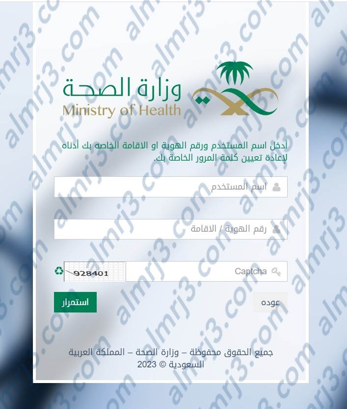 يتم تسجيل الدخول إلى وزارة الصحة عبر الخطوات التالية: