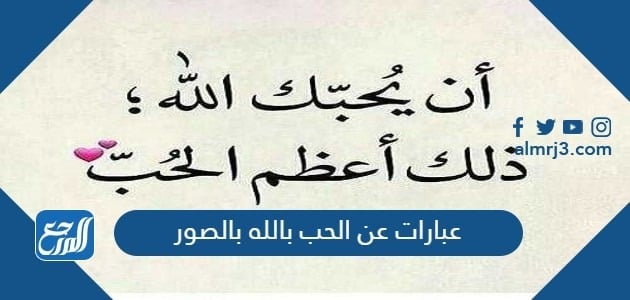 أجمل عبارات عن الحب بالله بالصور تحمل معها كثير من النَّفحات الإيمانيّة والمَشاعر الصّادقة، لأنّ الحُب في الله ينضوي على كثير من تلك المَشاعر الحقيقّة، وهو أحد سمات الإنسان المُسلم العَامر بالإيمان العَارف بأنّ من ثمرة هذا الحُب هو الفَوز بظلّ الرّحمن يوم لا ظلّ إلّا ظلّه، وعبر موقع المرجع يُمكن لزوّارنا الكِرام أن يتعرّفوا على أجمل عبارات عن حب الله وأجمل رسائل وكلمات وصور عن الحب بالله بين المسلمين.