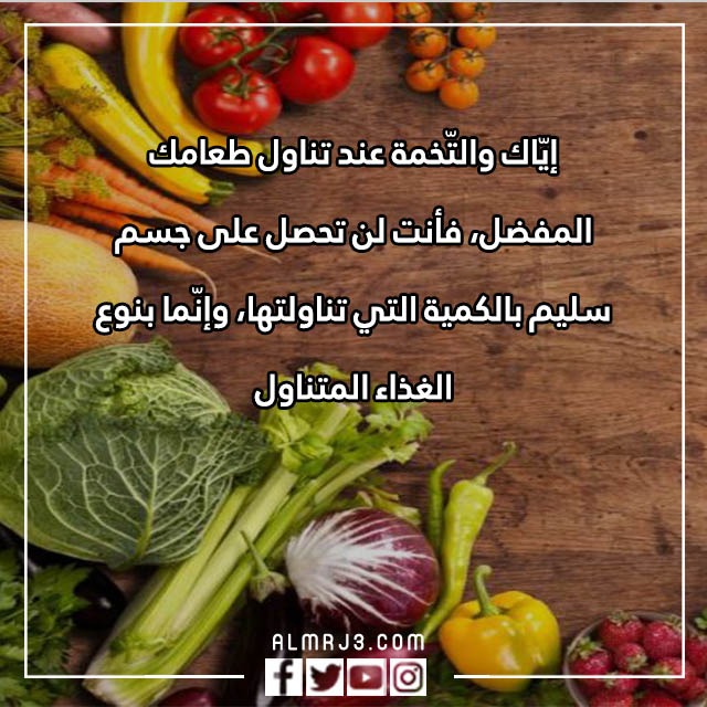 - إيّاك والتّخمة عند تناول طعامك المفضل، فأنت لن تحصل على جسم سليم بالكمية التي تناولتها، وإنّما بنوع الغذاء المتناول.