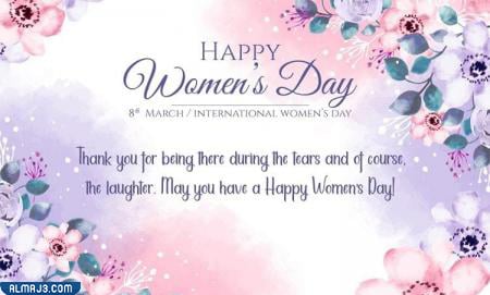 الترجمة: إنّ ذكرى اليوم العالمي، تتجدّد في قلوبنا مع كل يوم، لأنّ المرأة جزء حاضر في تكوين أي إنسان ،ذكرًا كان أم أنثى. - العبارة: We welcome the occasion of International Women’s Day in the most beautiful terms and words, because women deserve more than that too.