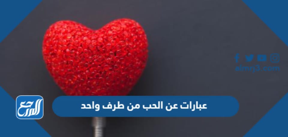 إنّ عبارات عن الحب من طرف واحد هي أحد الأمور التي يتم الحَديث عنها، وهي عبارة عن صنف حَزين من العِبارات وغالبًا ما تبعث في القلب على الألم، لأنّ الحُب من طرف واحد يُشعل القلب ويزيده حزنًا وألمًا في حال لم يكن هنالك طرف قادر أو راغب في مُبادلة هذا الحُب وعَكسه في الاتّجاه الآخر، وعبر مَوقع المَرجع يُمكن للزائر أن يتعرّف على أجمل عبارات عن الحب حزينة ومؤثرة، وعبارات عن الحب من طرف واحد.