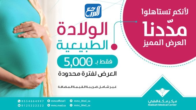 - سعر الولادة الطبيعية في مستشفى مكة الطبي ولفترة محدودة 5000 ريال سعودي، غير شاملة ضريبة القيمة المضافة، وهذا بحسب آخر بيان للمستشفى.