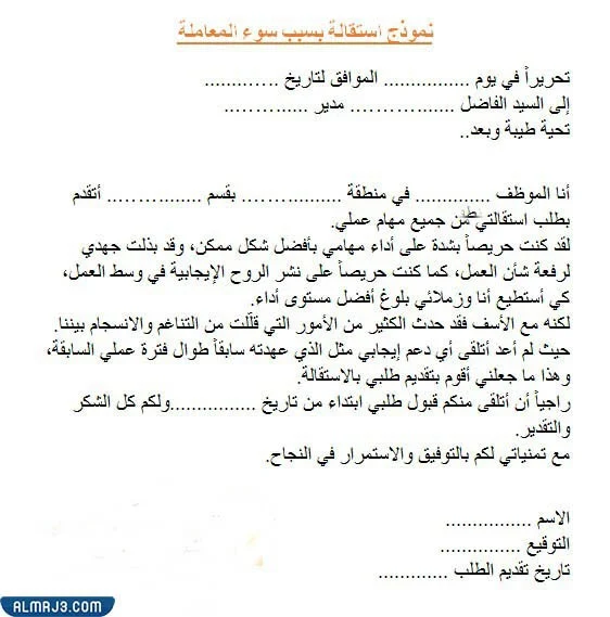 نموذج استقاله من القطاع الخاص doc