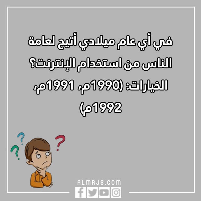 الإجابة الصحيحة: وعد بلفور. - في أي عام ميلادي أتيح لعامة الناس من استخدام الإنترنت؟