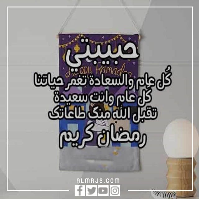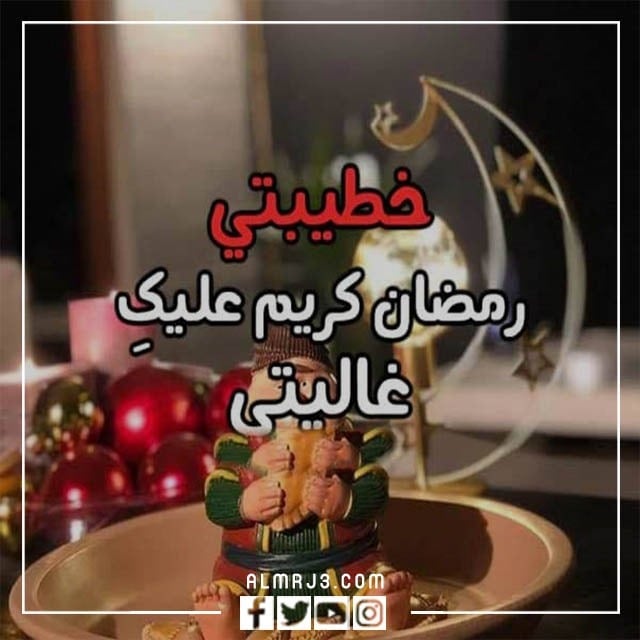- بمُناسبة شهر رمضان المُبارك، أسأل الله أن يُعزّز من حضورك في قلبي، وأن يُكرمك بتِمام الصحّة والعافية، وأن يزيدنا قربًا ومشاعر إيجابية، كلّ عام وأنتَ الخير يا خطيبي الغالي.