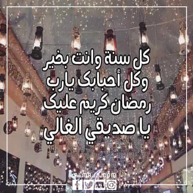- اللهم في شهر الخير والرّحمة بارك لصديقي الغالي، وأكرمه بالخير الوفير، وزده من الحسنات والسّعادة يا أرحم الرَّاحمين، كلّ عام وأنتم بألف خير بمُناسبة رمضان، أعاده الله علينا وعليكم بما تُحبّون.