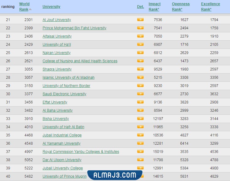 لا يوجد جامعة لها رقم ثابت ومحدد في التصنيفات العالمية أو حتى المحلية؛ فالرقم يختلف على حسب وجه المقارنة ووفقًا لعدد كبير من المعايير الأخرى، وفيما يلي نوضح ترتيب الجامعات السعودية 2025 حسب الأفضلية وفقًا لمقياس ويبوميتركس الإسباني: