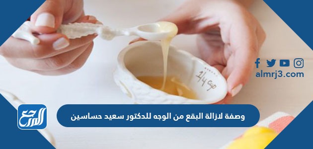 هناك وصفة لإزالة البقع من الوجه للدكتور سعيد حساسين وهي أفضل ما يمكن الاستعانة به لبشرة نضرة خالية من التصبغات ذو لون موحد، حيث يتم استخدام مواد طبيعية خالصة لا تؤثر على البشرة بأي آثار جانبية سلبية، كما أن مكوناتها موجودة في كل منزل ولكن يجب اختبار الحساسية للمكونات أولًا تجنبًا لالتهاب البشرة وكل التفاصيل يمكنكم معرفتها عبر موقع المرجع.