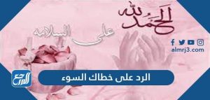 إنَّ الرد على خطاك السوء يكون بكلماتٍ وعباراتٍ جميلة، حيث هي من الكلمات المميَّزة التي يُطيّب بها الإنسان المسلم خاطر أخيه المسلم بعد حادثة أو سوء ما، ويبحث كثير من الناس عبر مواقع التواصل الاجتماعي عن ردود مناسبة لتلك الكلمة، وعبر موقع المرجع سنستعرض مجموعة من عبارات الرد على خطاك السوء.