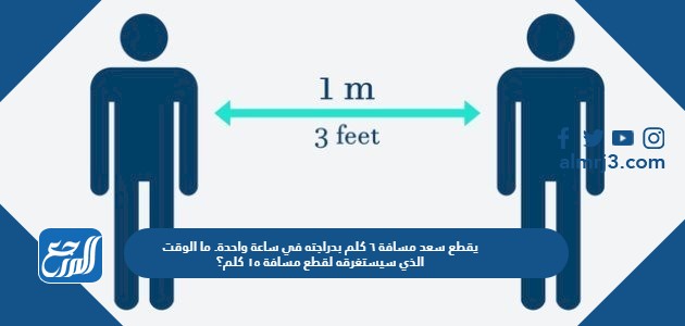 - السؤال: يقطع سعد مسافة ٦ كلم بدراجته في ساعة واحدة. ما الوقت الذي سيستغرقه لقطع مسافة ١٥ كلم؟
