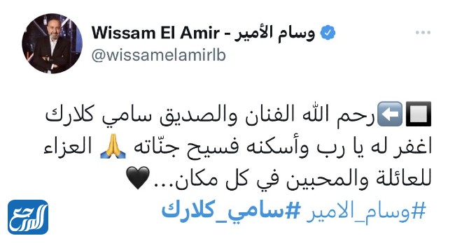 تحولت منصات التواصل الاجتماعي خلال ساعات فقط من إعلان خبر وفاة الفنان سامي كلارك إلى ساحة لتلقي العزاء في الفنان الراحل، والدعاء له وتقديم المواساة إلى أسرته، وقد شارك العديد من الفنانين منشورات لرثاء ونعي الفنان وفيما يلي سنعرض لكم أبزرها: