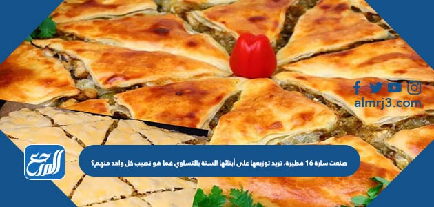 صنعت سارة ١٦ فطيرة، تريد توزيعها على أبنائها الستة بالتساوي فما هو نصيب كل واحد منهم؟