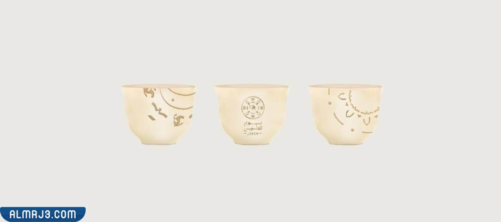 - فناجين القهوة العربية مطعمة بخطٍ ذهبي مميز يرمز لذكرى التأسيس.