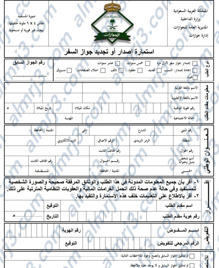 نموذج تجديد الجواز السعودي، يتطلب تَجديد جَواز السَفر السعُودي تعبئة نَموذج تَجديد الجَواز الصادر من إدارة الجوازات التابعة لوزارة الداخلية في المملكة العربية السعودية، والذي يتم الحصول عليه أثناء تقديم طلب تَجديد الجَواز، لذلك من خلال موقع المرجع سوف نتناول الحديث عن كيفية تَجديد جَواز السفر السُعودي إلكترونياً، وسنرفق نَموذج تجديد جواز السفر بالمملكة العربية السعودية.