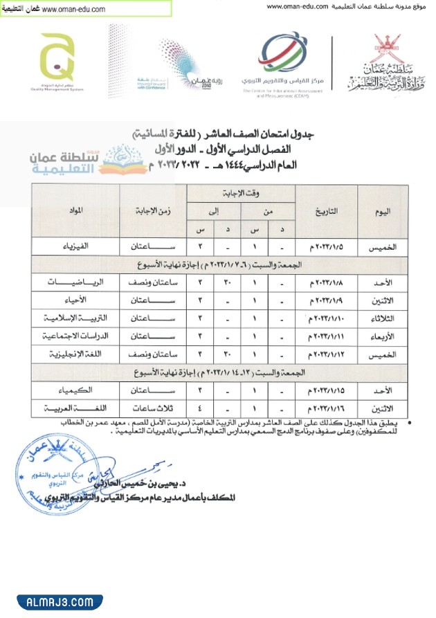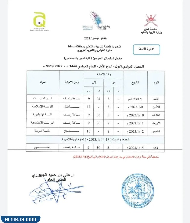 - 1 جدول الاختبارات النهائية سلطنة عمان 2023 الفصل الاول
