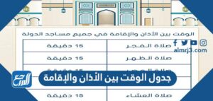 جدول الوقت بين الأذان والإقامة في كل فريضة