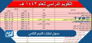 جدول اجازات الترم الثاني 1446