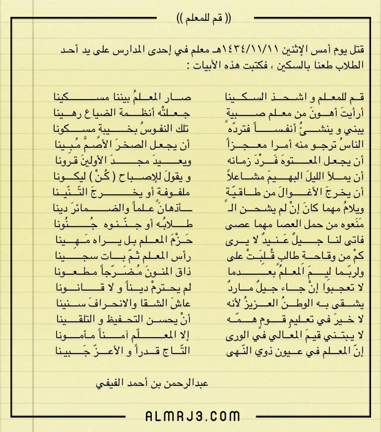 ู ู ุฃุฌู ู ุดุนุฑ ูุตูุฑ ุนู ููู ุงูู ุนูู ุงูุนุงูู ู ู ุง ูุชุจู ุงูุฅู ุงู ุงูุดุงูุนู -ุฑุญู ู ุงููู ุชุนุงูู- ุทุงูุจูุง ุงูุตุจุฑ ูู ุงูุชุนูู ู ู ู ุนููู ูุงุถู ูุจุฐู ุฌูุฏู ูู ุชูุฏูู ุงูุนูู ุงููุงูุน ูุทูุงุจูุ ูุฌุงุกุช ุชูู ุงูุฃุจูุงุช ู ูุชูุจุฉ ูู ุง ููู: