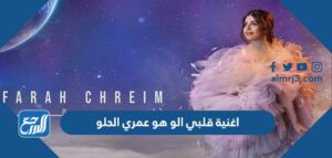 إن أغنية قلبي إلو هو عمري الحلو من أجمل الأغاني الرومانسية التي أصدرتها المغنية فرح شريم في الثالث والعشرين من شهر يونيو من العام الجاري 2022، وقد كانت الأغنية من تأليف وألحان محفوظ الماهر ومن توزيع الموزع حسام الصعبي، وفيما يأتي سنقدم كلمات أغنية قلبي إلو كاملة: