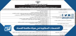 التخصصات المطلوبة في هيئة مكافحة الفساد
