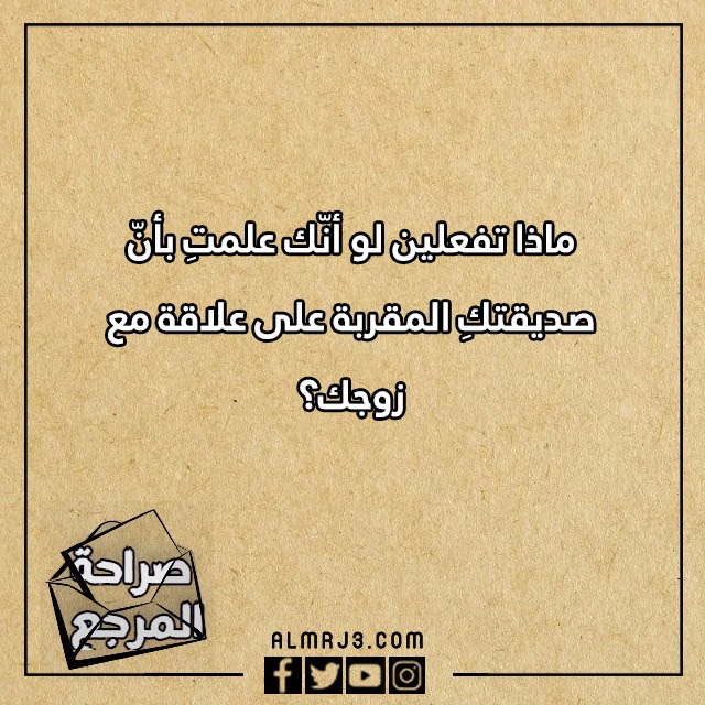 - ماذا تفعلين لو أنّك علمتِ بأنّ صديقتكِ المقربة على علاقة مع زوجك؟
