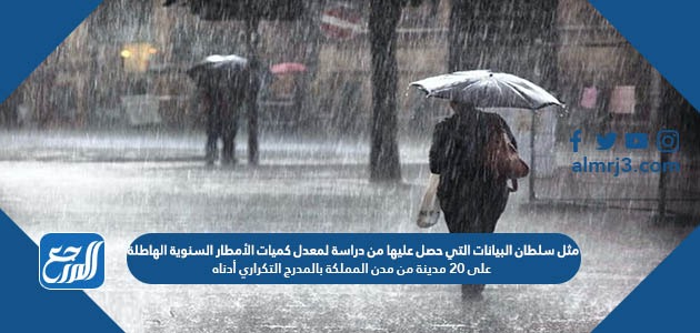 مثل سلطان البيانات التي حصل عليها من دراسة لمعدل كميات الأمطار السنوية الهاطلة على 20 مدينة من مدن المملكة بالمدرج التكراري أدناه، فحساب معدلات هطول الأمطار، من الأمور التي يخصها علماء الأرصاد الجوية الكثير من الاهتمام، وذلك لتأثيرها على رؤية المستقبل المناخي لمنطقة ما، كما يتيح لهم التنبؤات عن مواسم المطر الجيدة والسيئة، وفي مقالنا اليوم عبر موقع المرجع سوف نجيب على هذا السؤال المطروح، ونتعرف على معدل كميات الأمطار ونذكر ما يخصها.