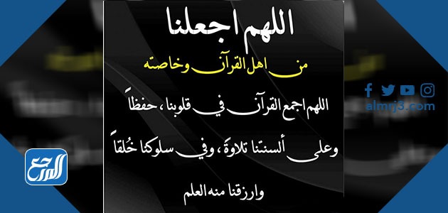 - اللهم اجعلنا من أهل القرآن الذين هم أهلك وخاصتك، يا ذا الجلال والإكرام.