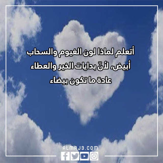 - أتعلم لماذا لون الغيوم والسحاب أبيض، لأنّ بدايات الخير والعطاء عادة ما تكون بيضاء.