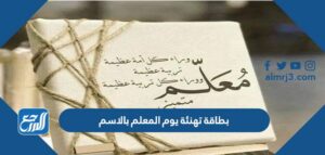بطاقة تهنئة يوم المعلم بالاسم مميزة جاهزة للطباعة التي يتشاركها الكثير من الأشخاص عبر مواقع التواصل الاجتماعي احتفالا بقدوم عيد المعلم، وهو اليوم الذي تحتفل به معظم الدول حول العالم، احترامًا وتبجيلًا لدور المعلم في الحياة، وبهدف تلبية الاحتياجات الخاصة بالمعلمين والتي تُعيق أداء واجبتهم، ولهذا فإن الاحتفال بيوم المعلم من الأمور المميزة، ومن خلال هذا المقال سيعرض لكم موقع المرجع بطاقات يوم المعلم العالمي وإدراج بطاقة تهنئة يوم المعلم بالاسم مميزة جاهزة للطباعة.