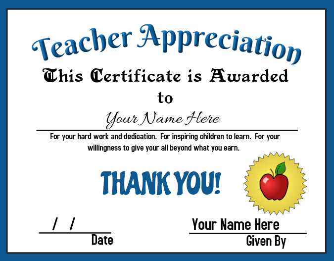 عند الرغبة إلى تقديم شهادة تقدير وشكر إلى المعلم أو المعلمة بالاسم سواء اسم المعلم الذي سوف يتسلم الشهادة أو اسم الطالب الذي سوف يقدمها إليه أو اسم المدرسة؛ فهنا يكون هناك حاجة إلى استخدام شهادات تقدير قابلة لإجراء التعديل عليها وإضافة وتغيير البيانات المرفقة بها إلى البيانات الجديدة الخاصة بالمدرسة والطالب والمعلم، ولا سيما أن شعور المعلم بأنه قد تم إعداد شهادة شكر وتقدير بالاسم له خصيصًا تًدخل السعادة بشكل كبير إلى قلبه وتشره بأنه حقًا محل اهتمام وتدير من طلابه ومن مشرفيه وقادته داخل المدرسة ومن المجتمع بِرُمَّته، ويُمكن مما يلي الحصول على بعض نماذج شهادة شكر وتقدير للمعلم قابلة للتعديل: