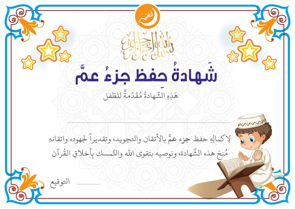 تصميم شَهادات شُكر وتقْدير جاهزة وقابلة للتعديل 1445 لحفظة القرآن