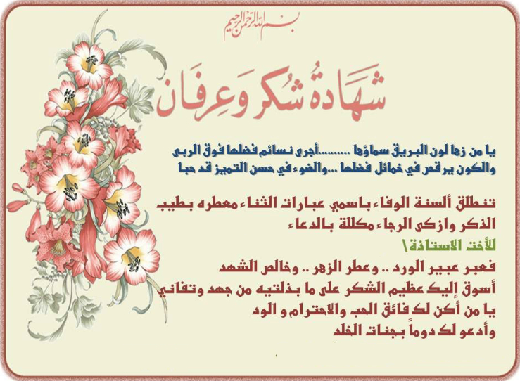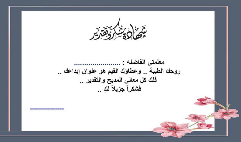 شهادات شكر وتقدير للمعلمات من الطالبات