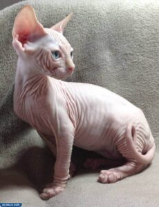 يدعى بالقط الفرعوني بسبب ملامحه الغريبة ووجه الجهم، كما أنه قط يختلف عن بقية السلالات الأخرى من القطط المنزلية، معاطفها الملونة لا تحتوي الشعر أو الفرو، وهو قط ذو جلد مجعّد، ويتمتع بوجه صغير مثلث هرمي الشكل الأذنين إلى أسفل الذقن، بأنف كبير يتوسط العينين الكبيرتين وله أذنين طويلتين، أما ملامح وجهه فهي غريبة نوعاً ما لكون عظام وجنتيه بارزتين بشكلٍ واضح، والأهم، هو أن معطفه جلدي يخلو من الفرو، الأمر يعود إلى اختلاف وراثي جيني أثناء التهجين، منظرها مخيف ولكنه يلفت انتباه العديد مربي القطط، والجدير بالذكر أن قطط سفينكس هي قطط نشيطة، تحب اللهو والمرح الذي تحب من خلالها إثارة اهتمام أصحابهم، وهي كائنات ودودة للبشر، متكيفة مع العيش في الأجواء الدافئة، لذلك لا حمايتها خارج المنزل، ويتراوح سعره بين الـ 300 والـ 3000 دولار أمريكي.