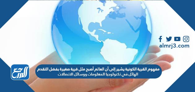 مفهوم القرية الكونية يشير إلى أن العالم أصبح مثل قرية صغيرة بفضل التقدم الهائل في تكنولوجيا المعلومات ووسائل الاتصالات