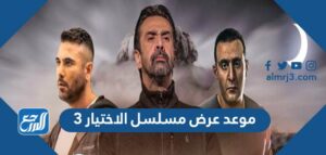 موعد عرض مسلسل الاختيار 3 في رمضان 2022، للنجم الكبير كريم عبد العزيز، فبعد نجاح الأجزاء السابقة لهذا المسلسل في المواسم الرمضانية السابقة، عزمت شركة الإنتاج على تكرار التجربة في جزء ثالث، ليدخل في السباق الرمضاني لهذا العام، وعبر موقع المرجع نجمع أهم المعلومات المتعلقة بقصة مسلسل الاختيار 3، بالإضافة إلى مواعيد عرض وإعادة مسلسل الاختيار 3، وابطال مسلسل الاختيار 3 والقنوات الناقلة لهذا العمل، والإعلان الرسمي الأول للجزء الثالث من المسلسل عبر اليوتيوب.