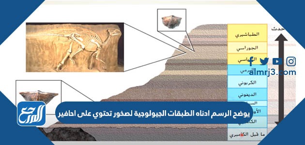 يوضح الرسم ادناه الطبقات الجيولوجية لصخور تحتوي على احافير
