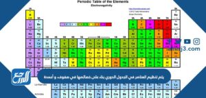 يتم تنظيم العناصر في الجدول الدوري بناء على خصائصها في صفوف، و أعمدة