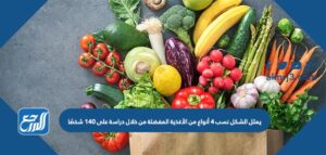 يمثل الشكل نسب 4 أنواع من الأغذية المفضلة من خلال دراسة على 140 شخصًا
